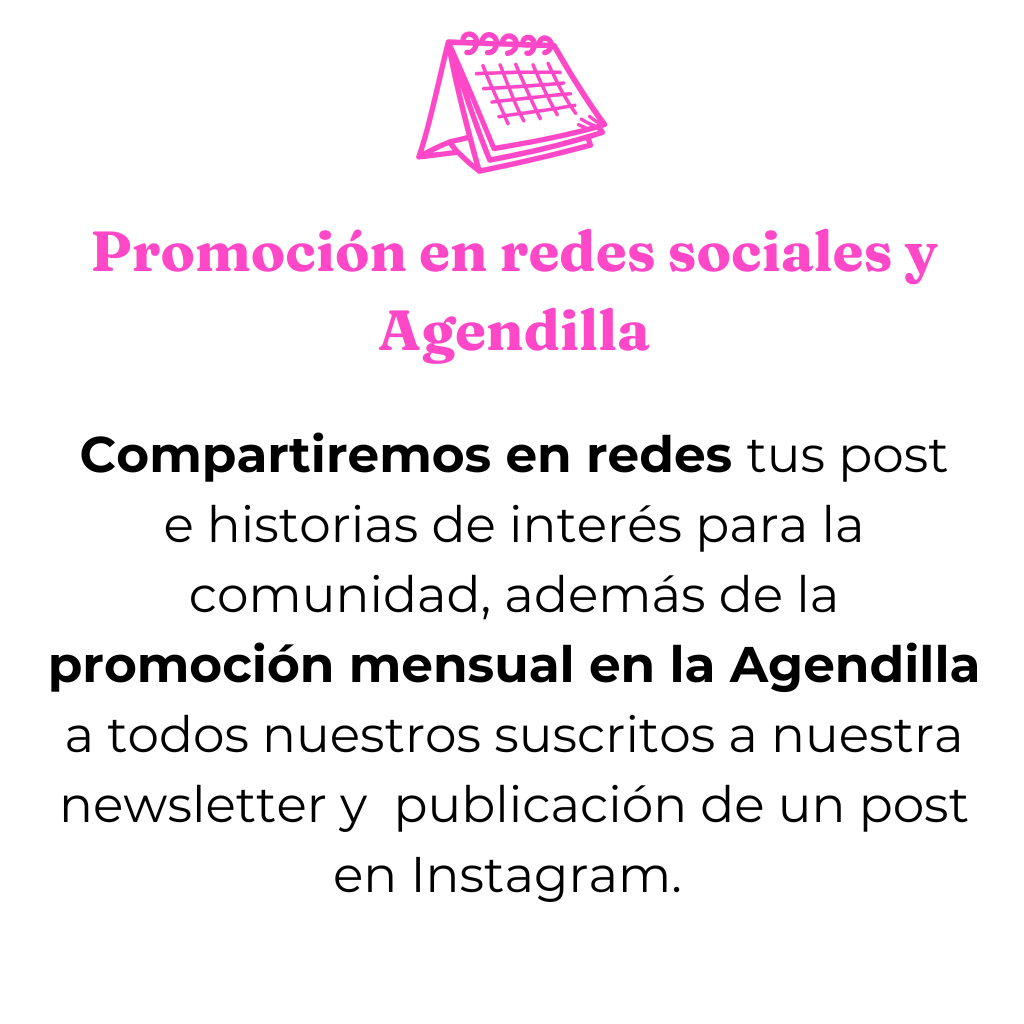 - La Agendilla (correo mensual a todos nuestros suscritos + post en Instagram y Facebook con los destacados del mes)